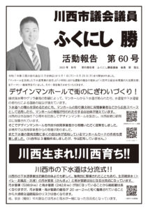 川西市は令和6年に市政施行70周年を迎えました。責任世代を生きる一人として様々な課題から逃げることなく取り組んでいきます。すべては市民の福祉の増進となるよう持続可能な川西市の行財政経営を提案していきます。